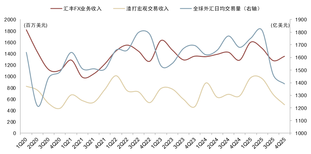 图表:国际银行全球市场业务与外汇日均交易量关系密切,1Q26相关业务收入存在超预期可能