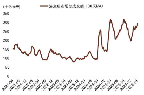 手续费收入预计同比增长~10%,势头仍强劲。具体看:1)金融市场业务收入可能好于市场预期。主要由于地缘政治冲突背景下大类资产价格波动较大,可能催生交易需求。近期已披露业绩的美国银行相关业务收入普遍高增,可作为侧面印证。2)财富管理预计维持双位数增速。尽管1Q26资本市场波动较大,但成交量仍维持在相对高位;此外港股IPO规模1Q26再创新高;
