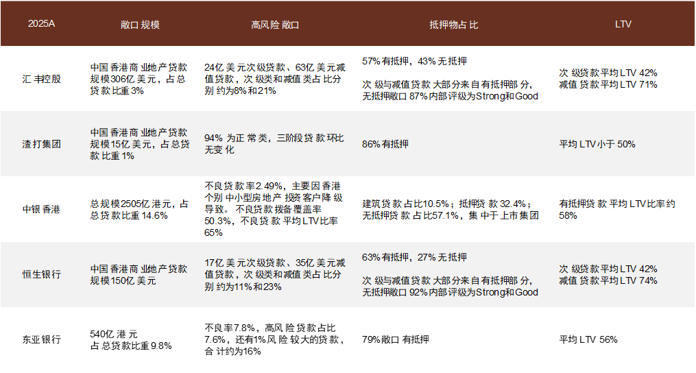 图表:2025年香港银行香港商业地产敞口情况:部分机构可能仍有潜在计提压力