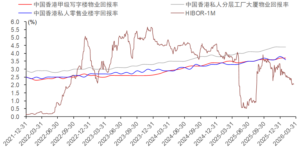 图表:更低的利率环境下,香港商业地产迎来租金回报率改善
