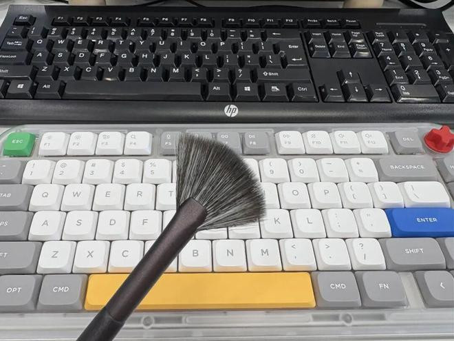 键盘脏了,根本就不用去买专用的清洁套装。拿一把淘汰下来的化妆刷,就可以将键盘缝隙里的灰尘清理干净。