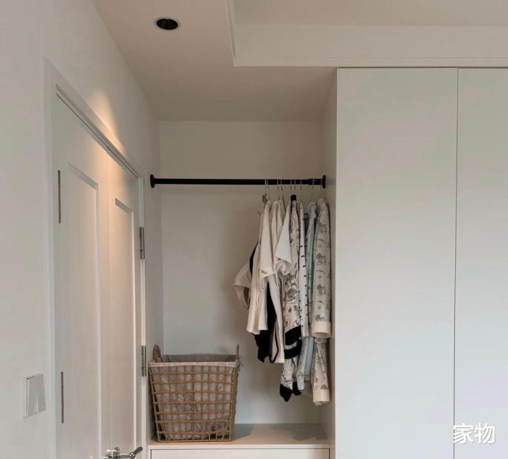 在家里的衣柜、玄关柜,甚至是卧室床后面,其实都可以留出“次净衣区”,它的功能主要是为了能避免家中脏衣服乱堆而产生的杂乱,但我个人还是更建议与定制衣柜组合吗,或放在门后这类不起眼的地方,以起到半隐藏收纳的效果。