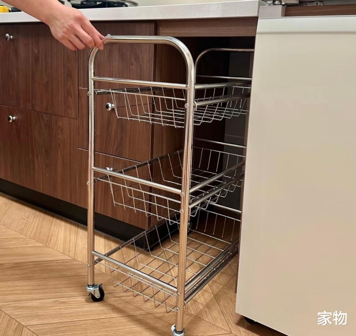 相信我,如果是这两年装修的小伙伴,应该能明白这种带轮子的小推车有多实用,在厨房留出一个小推车的位置,相当于多了一个灵活移动且充分利用纵向空间的大号拉篮,放些蔬菜罐头调味品都很合适。