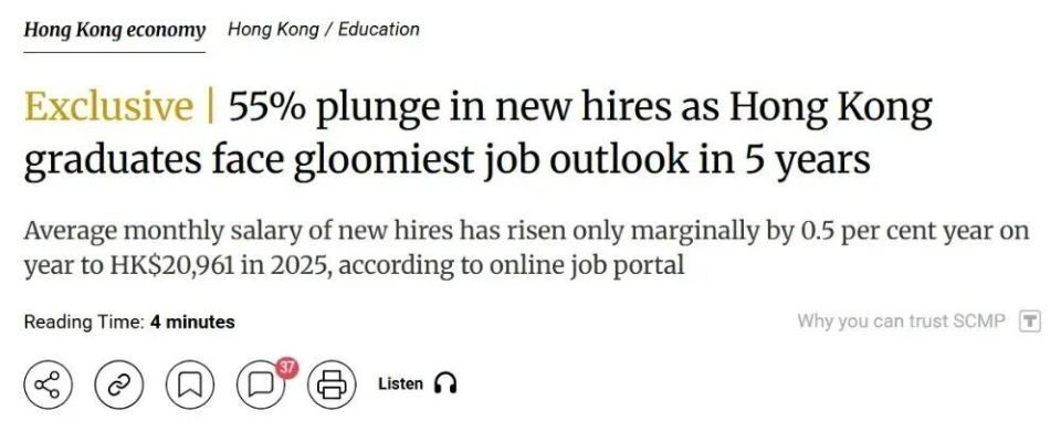 而《南华早报》独家揭露了2025年的香港求职市场上最令人焦虑的真相:9.2万人,抢全港3万个岗位。一场没有硝烟的抢位战,早已打响。