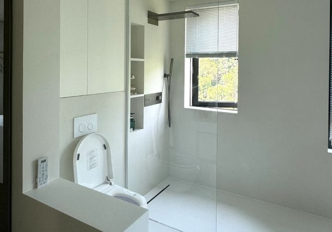 可是,目前流行另外一种反骨设计,就是卫生间不做淋浴房,而是采取下沉式淋浴区配隐形地漏。